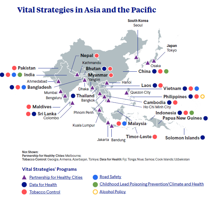 Vital Strategies is a leading global public health organization and trusted partner of governments and civil society around the world. We design and support scalable solutions to address the leading causes of death, disease and injury. Our strategic focus areas include the climate, environmental, urban health, gender, with a special focus on non-communicable disease and health systems strengthening.