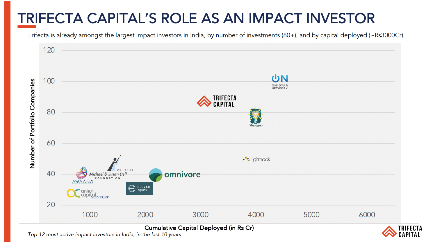 - Total Impact Investments: Rs 3,400 ($450M+) / 86 companies