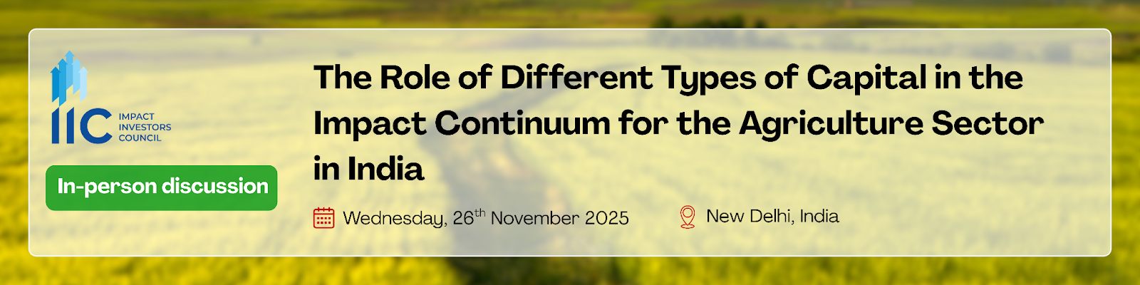 The Impact Investors Council (IIC), with support from The Rockefeller Foundation, will launch a whitepaper and host an invite-only discussion on “The Role of Different Types of Capital in the Impact Continuum for the Agriculture Sector in India” on Wednesday, 26th November 2025, in New Delhi.